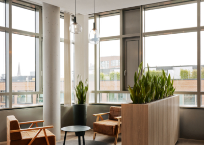 Dieses Projekt habe ich gemeinsam mit meiner Kollegin, der befreundeten Innenarchitektin Svenja Henckel, von Grund auf gestalterisch entwickelt und danach komplett umgesetzt. Die enge Abstimmung und das gegenseitige Verständnis haben es ermöglicht, unsere Gestaltungskraft auf einen Punkt zu konzentrieren – mit dem Ergebnis einer hochwertigen, modernen und in jedem Detail durchdachten Bürofläche.