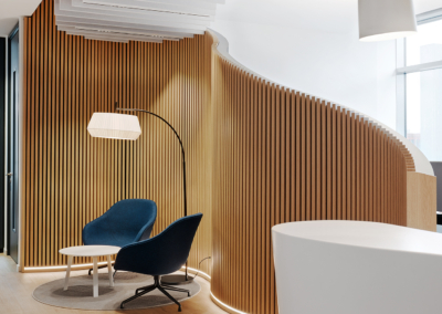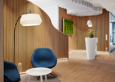 Dieses Projekt vereint höchste Designqualität, funktionale Raffinesse und akustische Perfektion. Vom Empfang über den Konferenzraum bis hin zur Cafeteria ist eine Bürofläche entstanden, die modern, repräsentativ und zugleich menschlich nahbar wirkt. Ein echtes Designer-Gedicht, das zeigt, wie feinste Details und ganzheitliche Gestaltung zusammenspielen können.