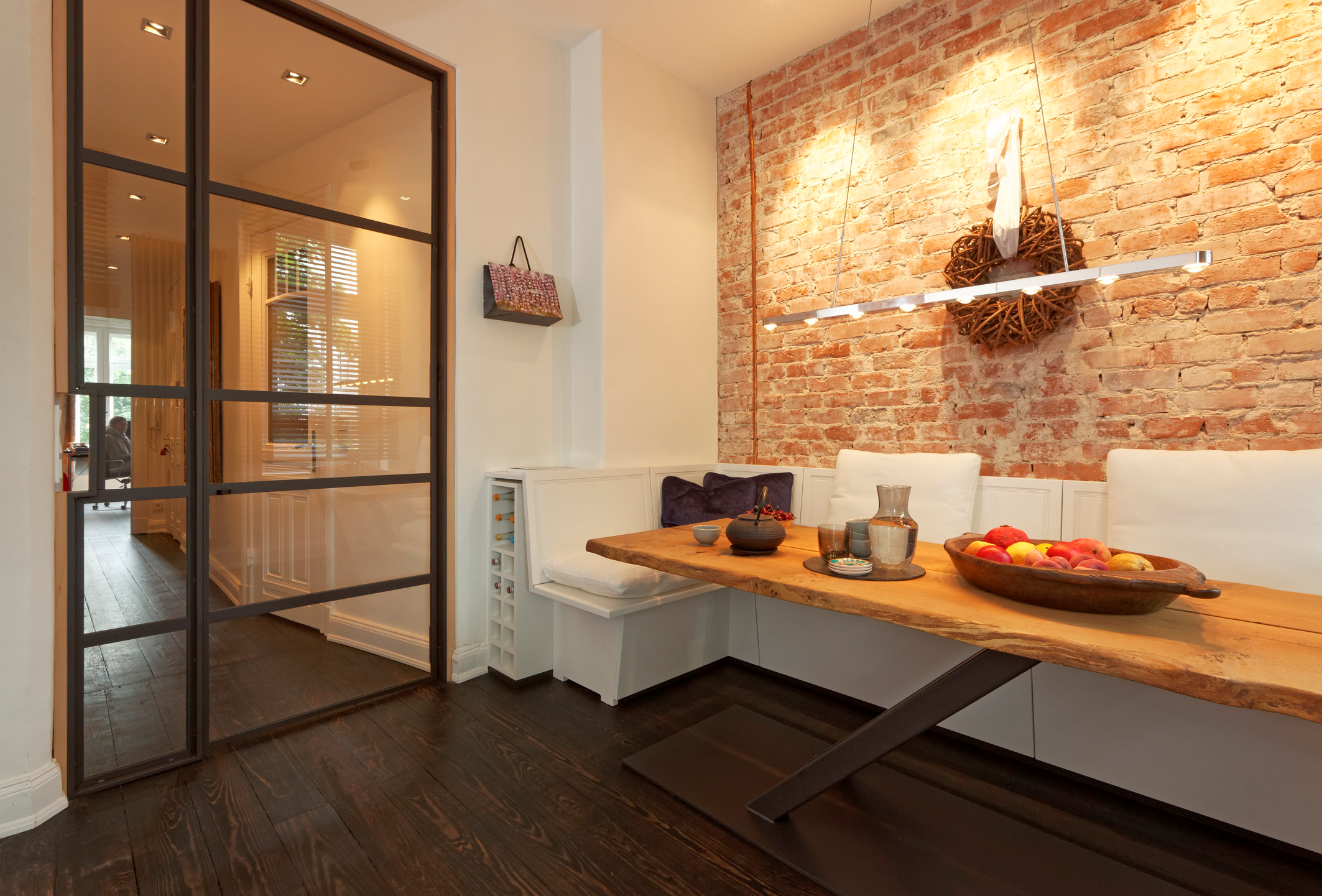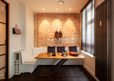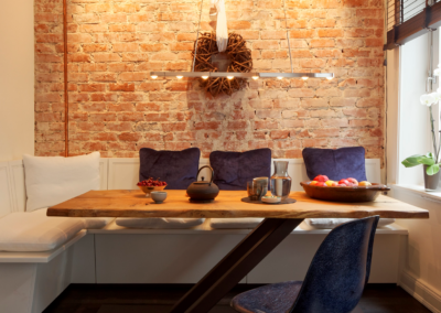 Eine offene Küche, handwerklich fein ausgeführte Einbauten, harmonische Farben und Lichtstimmungen – eine Atmosphäre, die Ruhe, Wärme und Persönlichkeit ausstrahlt. Viele Details offenbaren sich erst auf den zweiten Blick, doch genau das macht den Charme dieser Wohnung aus. Jedes Element hat seine Geschichte, jede Linie ihren Sinn.