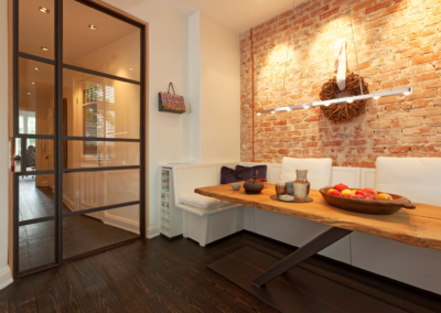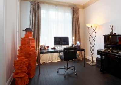 Abbruch, Maurerarbeiten, Elektrik, Sanitär, Heizung, Maler, Stuckateur, Tischler und Parkettleger – jedes einzelne Handwerk trug seinen Teil zum Gesamtbild bei. Bereits in der Entkernungsphase legte ich den roten Faden fest: eine klare Linie in Gestaltung, Funktion und Qualität. Vom technischen Aufbau über Materialauswahl bis hin zu feinsten Details wurde alles abgestimmt – mit dem Ziel, ein in sich stimmiges Gesamtbild zu schaffen. Die Bauherren begleiteten das Projekt sehr intensiv und mit großem Interesse – ein schöner, lebendiger Austausch, der das Ergebnis entscheidend prägte.