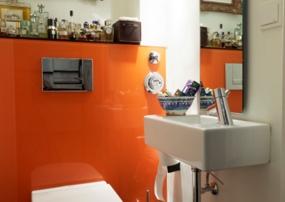 Die rund 70 m² große Wohnung im vierten Obergeschoss sollte vollständig saniert werden – Bad, WC, Küche und sämtliche Wohnräume inklusive. Dabei war die Herausforderung, die Seele des Altbaus zu bewahren und gleichzeitig moderne Technik, Funktionalität und klare Gestaltung zu integrieren. Ziel war es, das „Neue“ in die Wohnung einziehen zu lassen, ohne dass es sich aufdrängt. Alles sollte harmonisch wirken – ruhig, fein und authentisch. Besonderen Wert legte ich auf eine sanfte und saubere Bauabwicklung: Da das Haus bewohnt war, musste während der gesamten Bauphase Rücksicht auf die Nachbarn genommen werden – minimale Staub- und Lärmentwicklung, maximale Sorgfalt in der Ausführung.